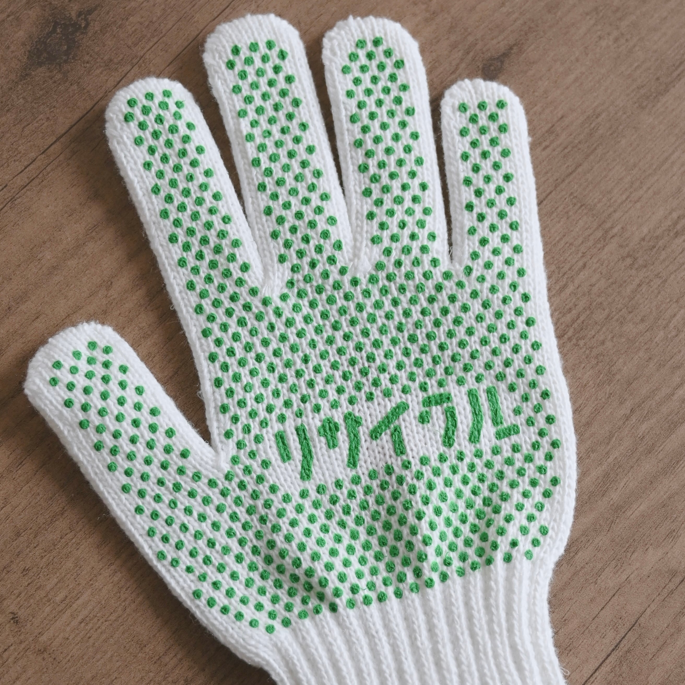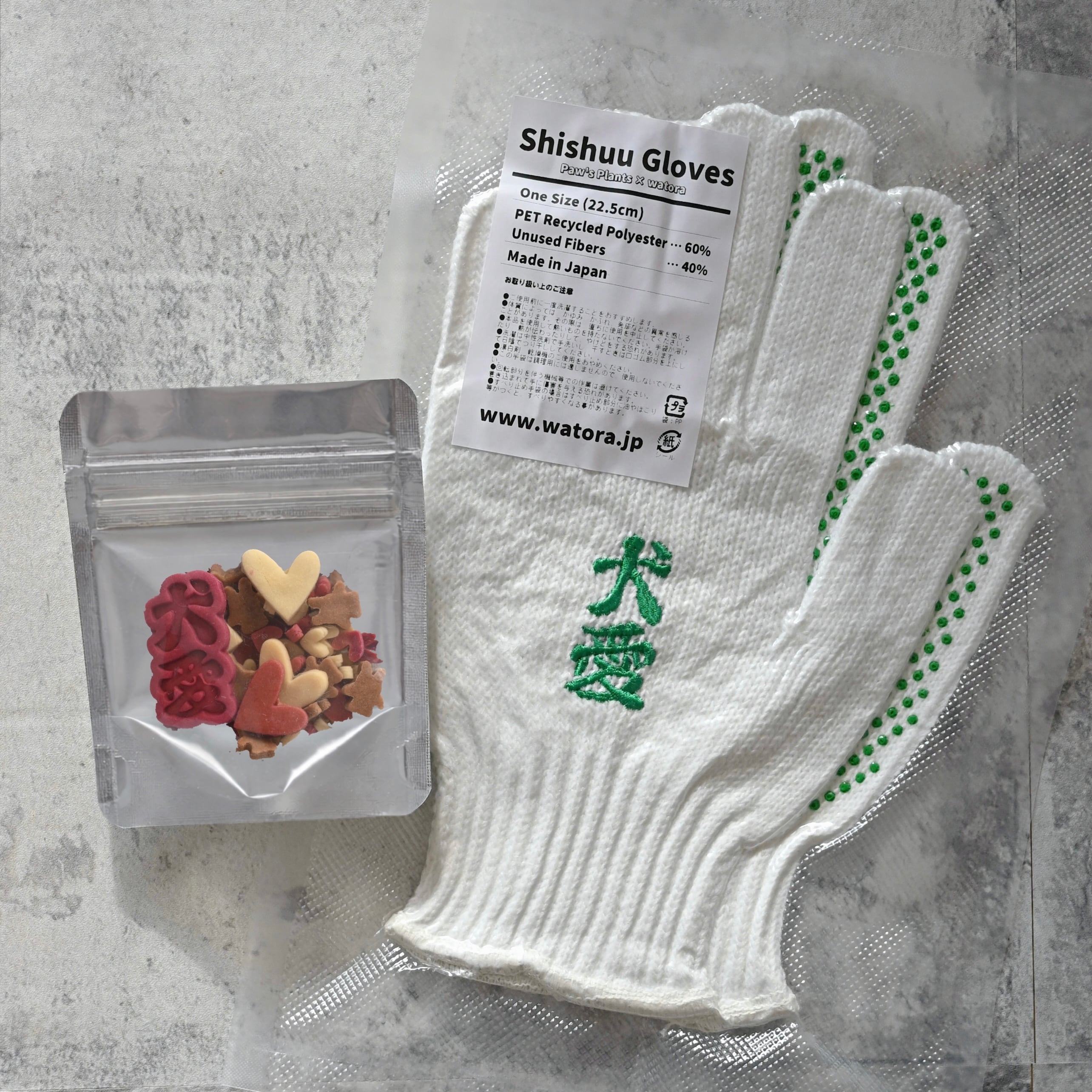 再生PETボトルで作られた厚手タイプの手袋に【犬愛】の刺繍を入れていただきました。